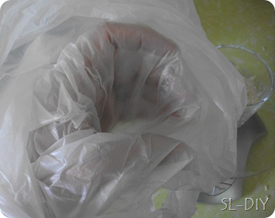 Get your plastic bag in one had like below, pour the rice in…….